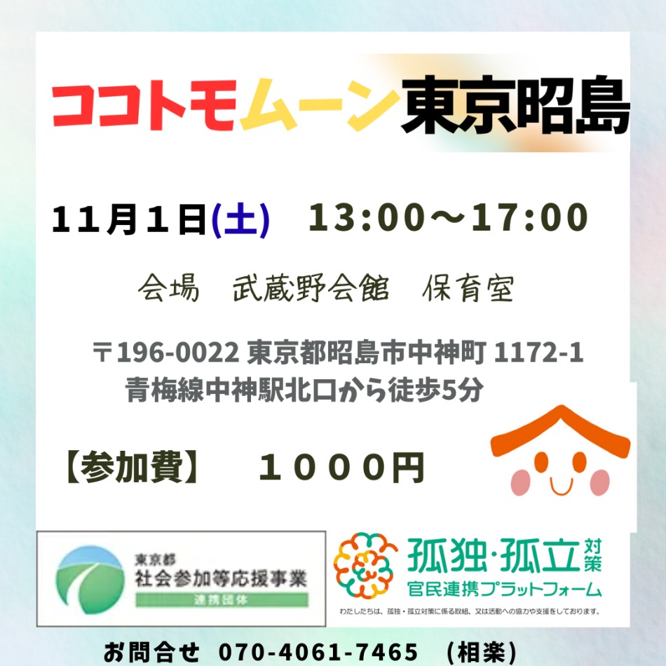 昭島ココトモの会は生きづらさを抱える方のための交流会です。