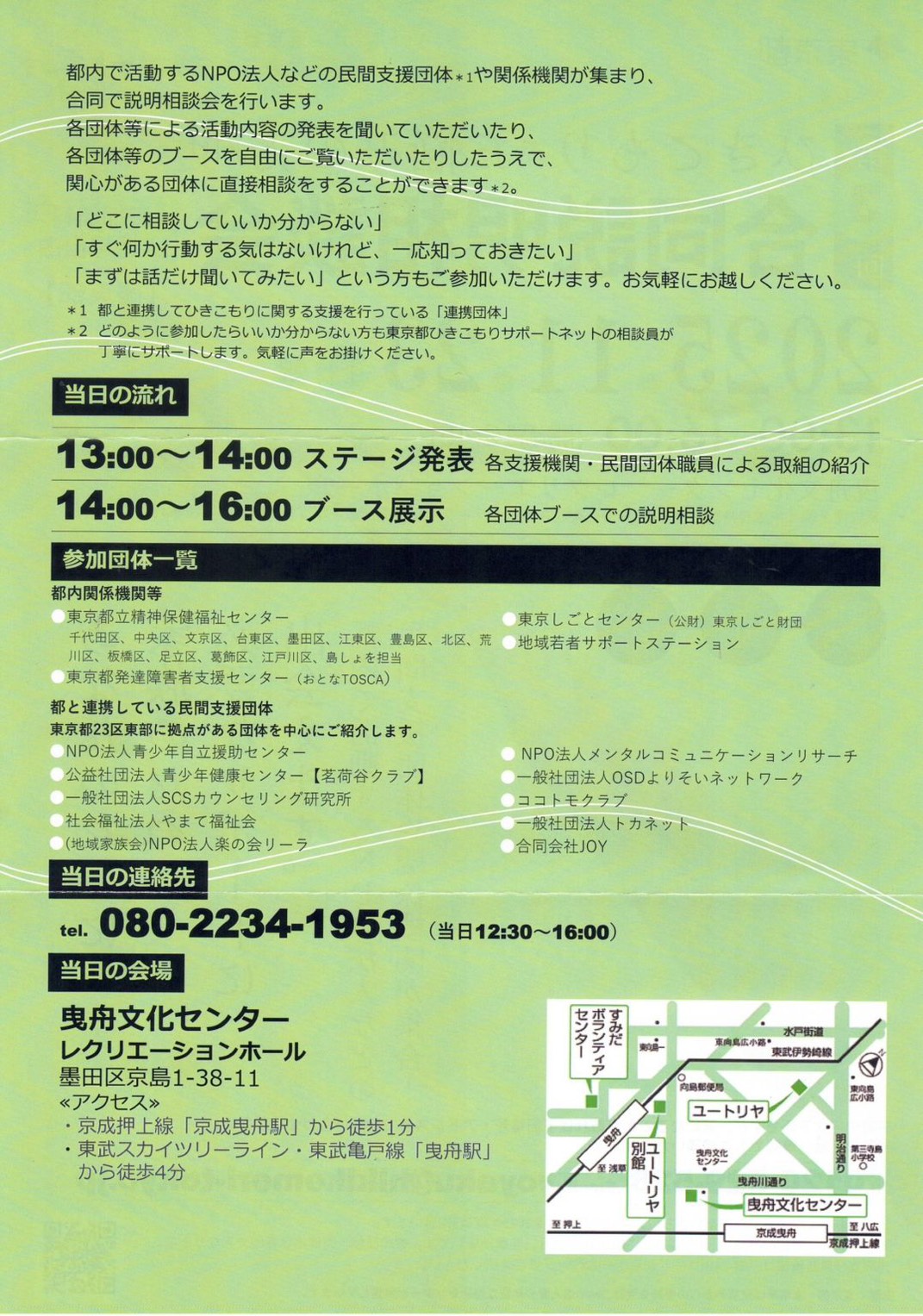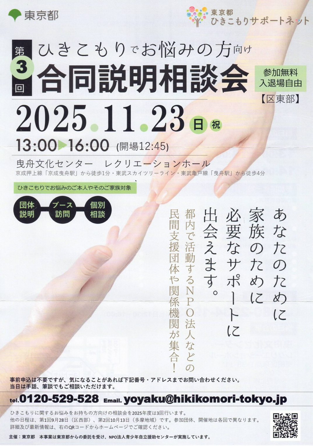 ひきこもりでお悩みの方向け【区東部】合同説明会のお知らせ |